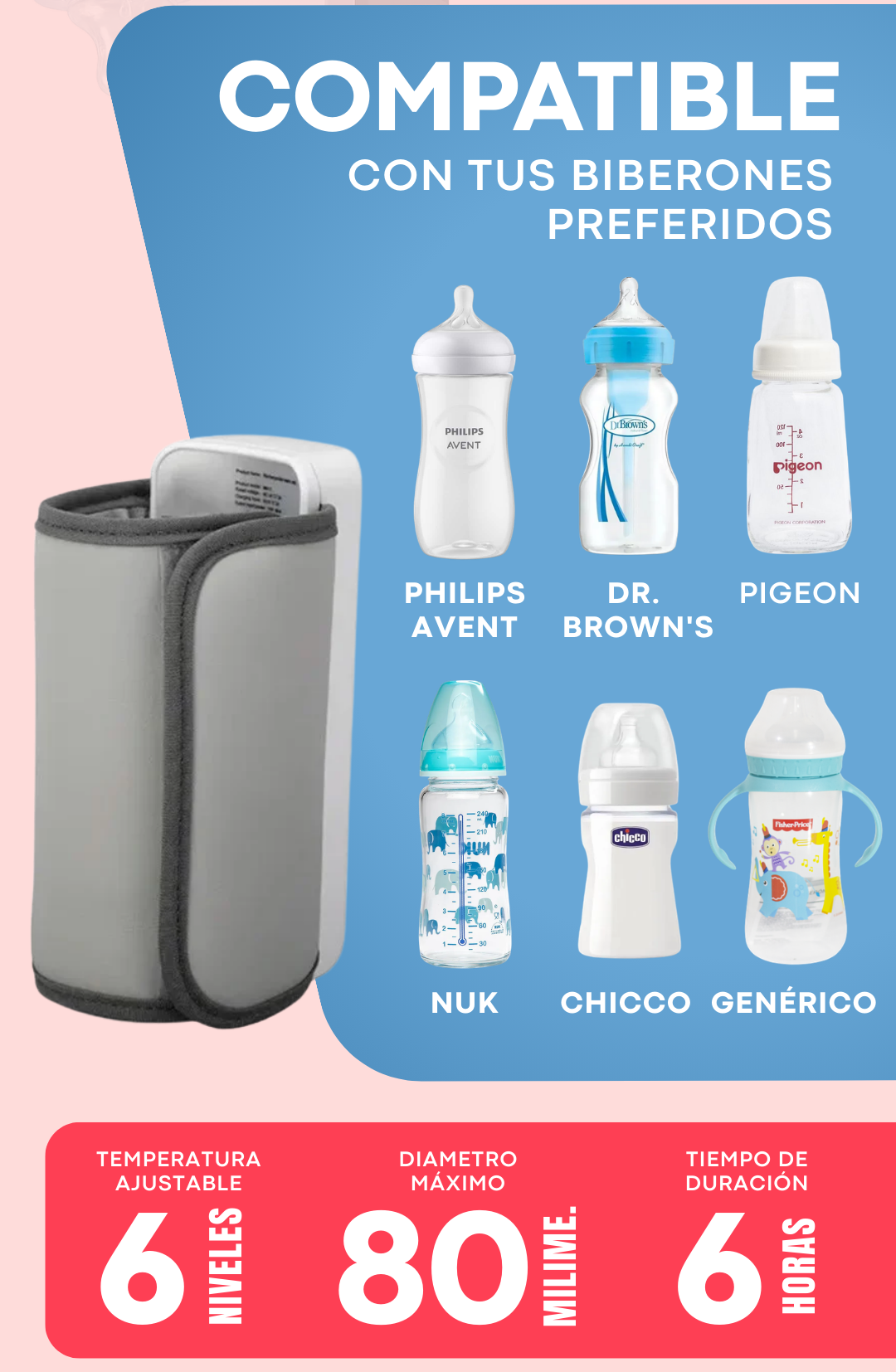 Como papá, me facilitó mucho las salidas con mi bebé. Calienta rápido y es muy cómodo de llevar. Excelente compra.