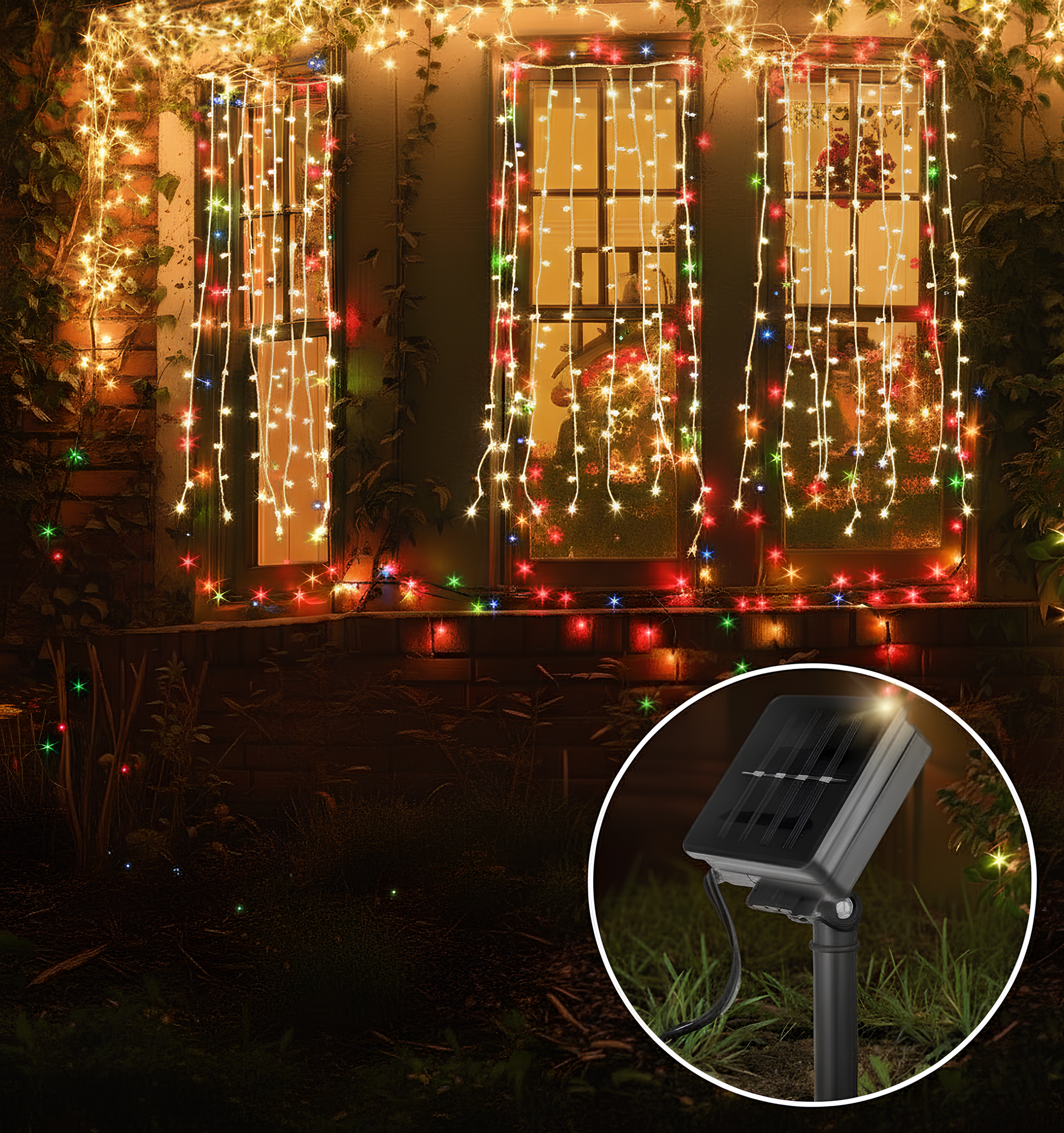 Cascada de Luces con Panel Solar-100 Focos